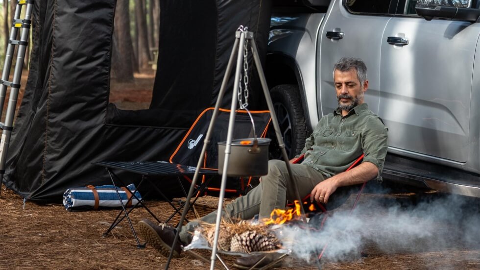 Your Atlas Cabin Box Urban Edition already includes a portable stove for quick meal preparations. However, you can always cook over an open fire outside for a more immersive camping experience.
