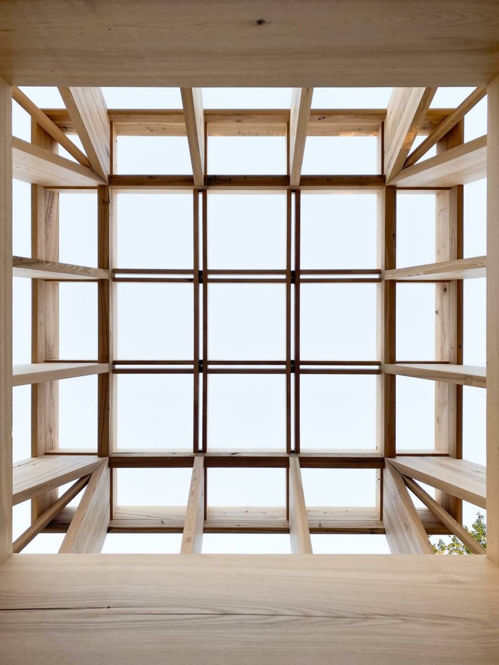 There are also wooden spikes at the intersections of the beams for added structural resistance. This setup also allow lighting cables to pass neatly through a vertical slit. As for furniture, the design maximized the functionality of the outer walls and inner divisions for storage, turning the house itself into a piece of furniture. The cubed spaces or 60-centimeter-deep gaps formed between the load-bearing frame ribs serve as shelves and wardrobes.