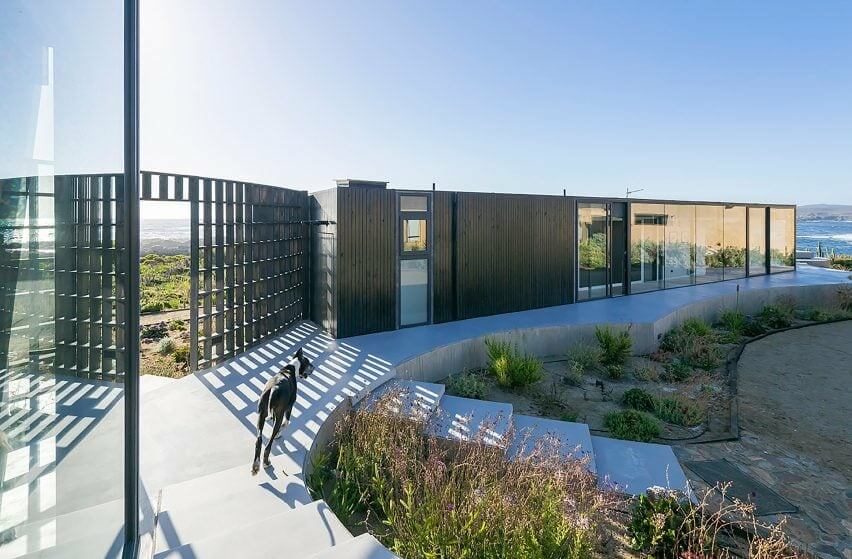 Chilean-based Land Arquitectos constructed the House of Circumfences from a design idea consisting of 25 circles drawn around the underlying geometries of the native vegetation, thus its name. The resulting lines were then used to lay out the expansive concave concrete plinth that steps down to sandy terrain.