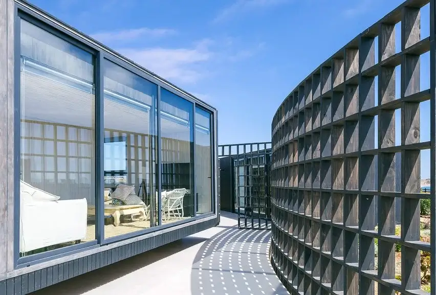 A wooden screen also trails along these structures to protect the house from the predominant southern wind and, along with the plinth, connects the pavilions. House of Circumfences is a beach house designed to be multi-generational where family members, from parents, grandparents, children, and grandchildren, can all commune. The pavilions then host residences offering expansive scenery views through floor-to-ceiling windows.
