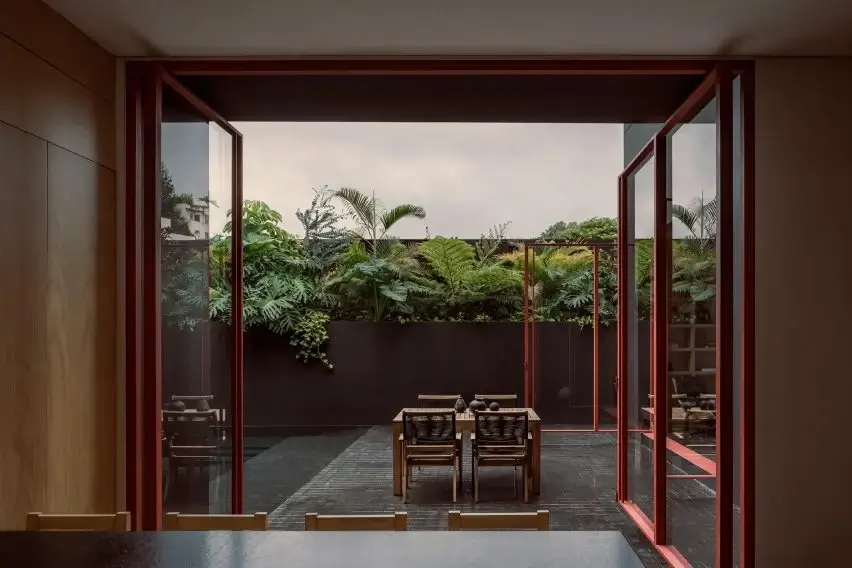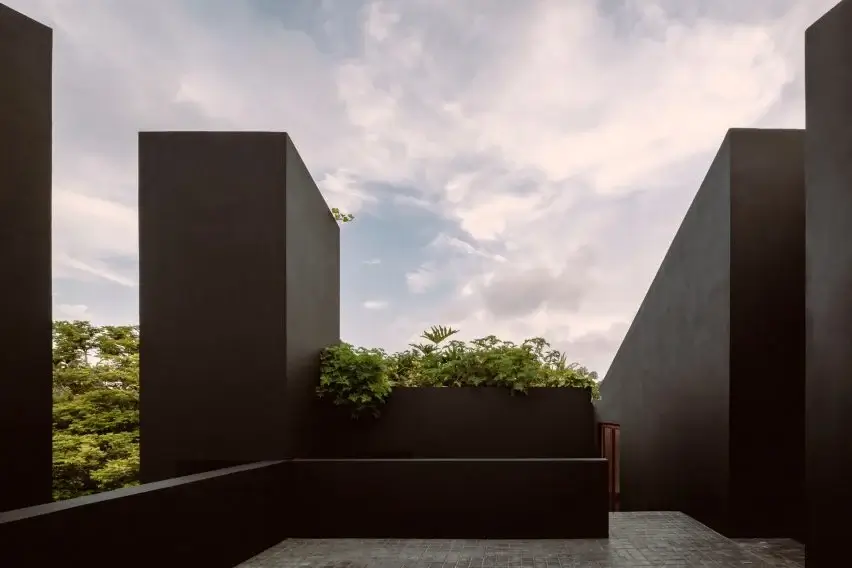As for the interior divisions, the House of Xalapa is three floors high.  The social spaces are on the ground floor, while the entertainment and study rooms are on the first floor. The private rooms are on the top floor and a terrace steps up to the rooftop area.