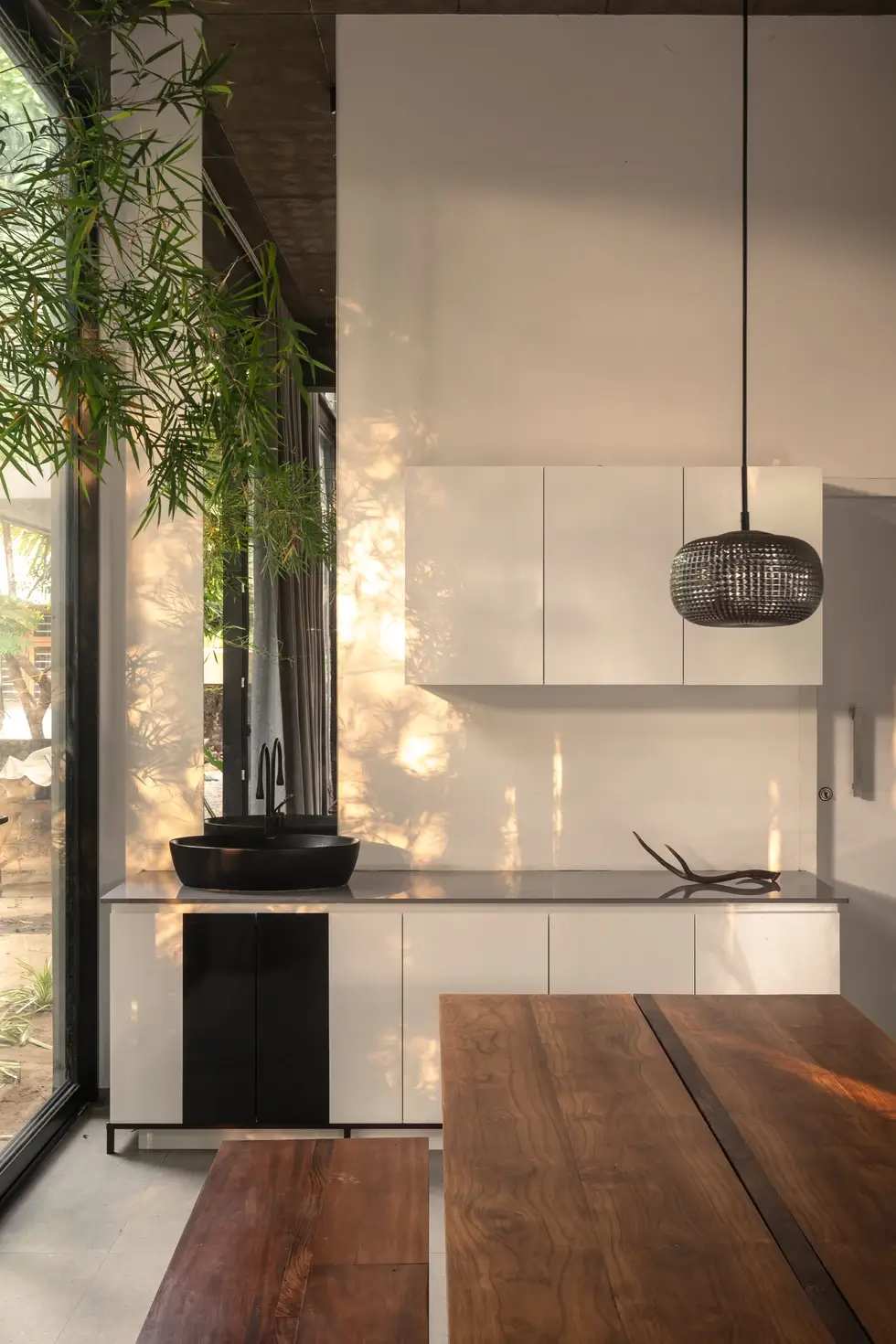 At first, we were wondering why they’re calling the House XO. However, closer shots of the dwelling’s facade reveal metal sculptures in the shape of the letters “X” and “O” painted white. According to the team, the idea was to merge “natural beauty with industrial design elements.”
