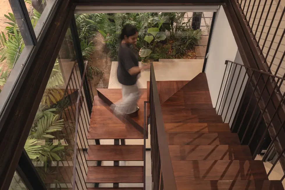 What gives the residence a bold profile are the fully exposed brown steel beams. While most modern buildings strive to keep these out of sight, it becomes a distinctive feature of the House XO. You’ll also notice the minimal use of curves as straight lines and sharp angles.