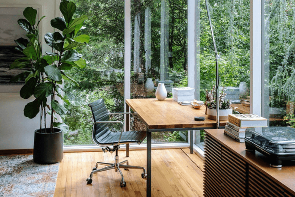 As for artificial light, an overhead ceiling light coupled with a desk lamp should be enough to provide a comfortable atmosphere.