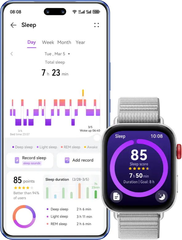 A 9-axis IMU (accelerometer, magnetometer, and gyroscope) accurately tracks your movement. For heart health, it uses an optical heart rate sensor. Finally, an ambient light sensor dynamically adjusts the screen’s brightness depending on how bright the external light sources are.