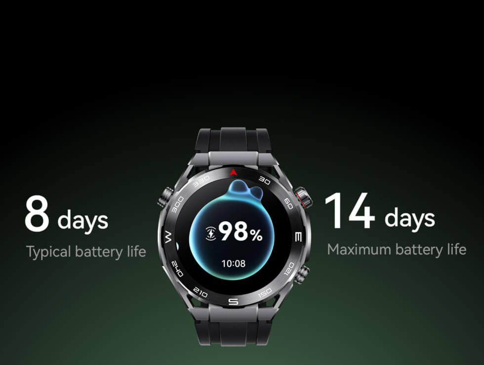 For convenience and robust ingress protection, the wearable charges wirelessly (accessory included). With standard usage, a full charge will last approximately 14 days or up to four days with all the bells and whistles active. Huawei claims the WATCH Ultimate is tough enough to withstand submersion up to 10 ATM.