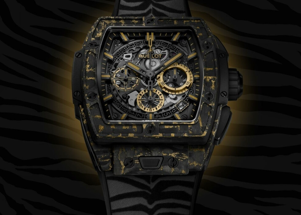 Much like how each Tiger’s stripes are unique, the Spirit of Big Bag Carbon Gold Tiger manages to embody the captivating characteristic. This means all 200 examples of this limited-edition run flaunt bespoke patterns. You’ll find it on every surface except for the caseband, pushers, and crown.