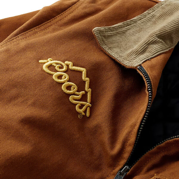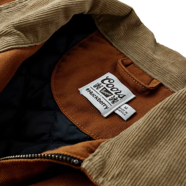 Meanwhile, a retro-inspired corduroy collar and cuff lining add a touch of class and elegance to a rugged design. This work jacket also comes equipped with just enough storage options for your on-the-go essentials. These include a couple of side hand pockets that also serve as hand warmers, one zipper chest pocket, and an interior stash pocket. The Huckberry x Coors Banquet Work Jacket in Brown features snap buttons on the cuffs and a central zipper closure.