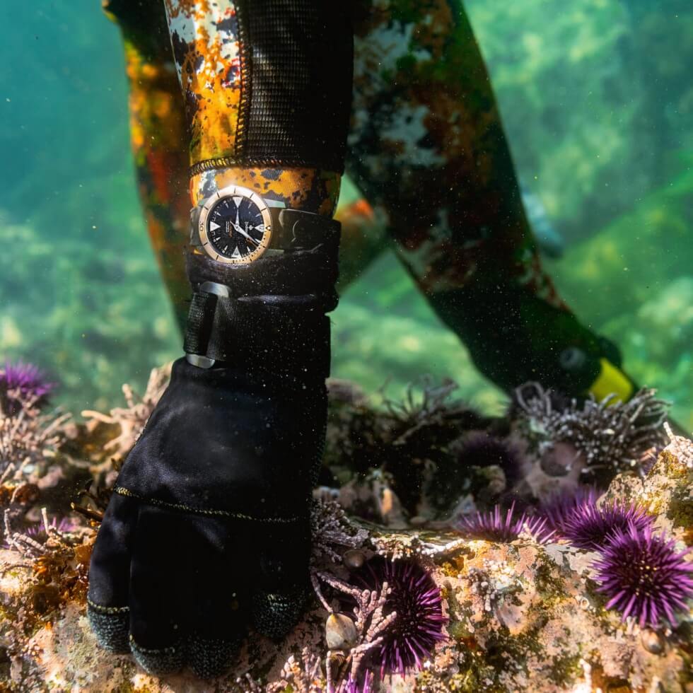 The most recent releases that made out pages was the titanium SKU for the model’s 140th anniversary, which was then followed by the LHD Pro-Diver GMT – our favorite colorway. For its latest tie-in with Huckberry, Zodiac endows its rugged timepiece with bronze elements as a tribute to old-school diving helmets.