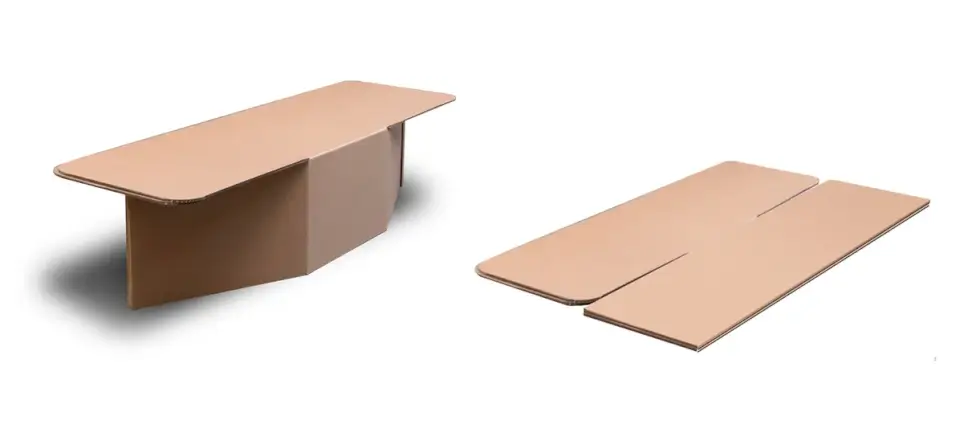 The Humanitarian Cardboard Bed also sets up in five seconds. It starts as an extra-flat cardboard sheet and with a simple lift and fold, like opening a cardboard box, it transforms into a three-dimensional structure with a rigid core. No tools needed and one person can even assemble 700 beds in an hour. Moreover, using cardboard is the cheapest and durable structural material out there that can last long enough to provide aid during humanitarian emergencies.