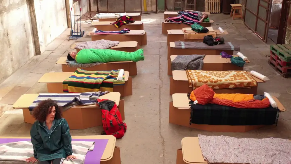 “It is a fast, versatile and cost-effective solution. It can double the approved strength of a humanitarian bed and provide comfort and shelter in a time of high vulnerability. People can’t believe it when they see five people standing on our bed,” says Héctor Muñoz, head of manufacturing at Humanitaria, which is founded in Barcelona by Juan Sanz and J. Alberto Paniagua.
