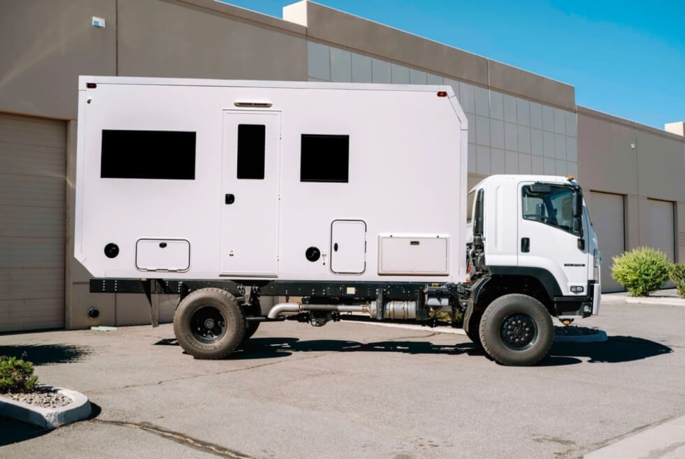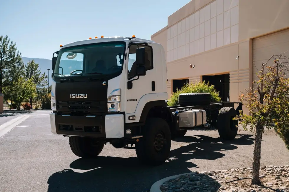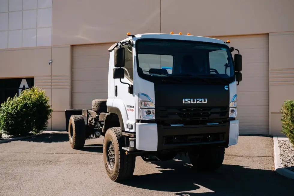 For example, the shop currently has several orders that count on a 2024 Isuzu FTR 4×4. The donor vehicle touts an air-conditioned three-seat cab with power steering, power windows, and power door locks. Beneath rumbles a 6.7-liter Cummins B turbocharged diesel engine mated to a six-speed Allison automatic gearbox.