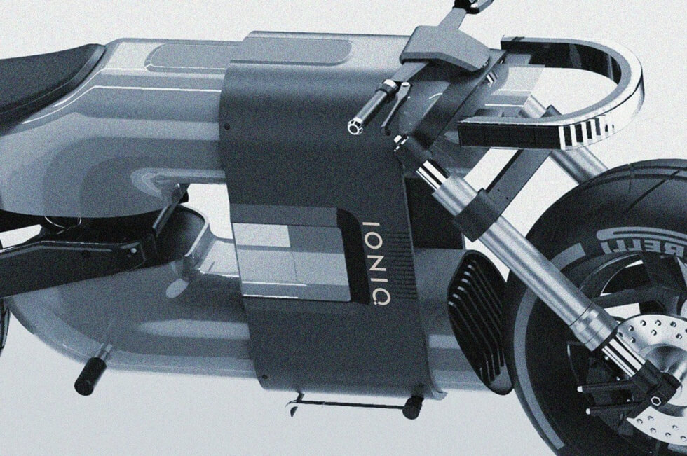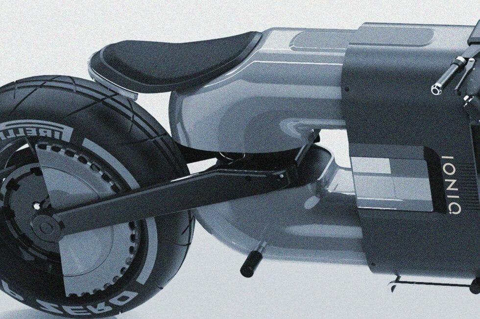 If the name seems familiar, that’s because Hyundai uses it to designate its lineup of EVs. However, not only is Ji woong Cha going for an electric café racer platform, but he’s also incorporating the “Q” into the design. It’s not immediately noticeable, but the frame and swingarm form the letter.