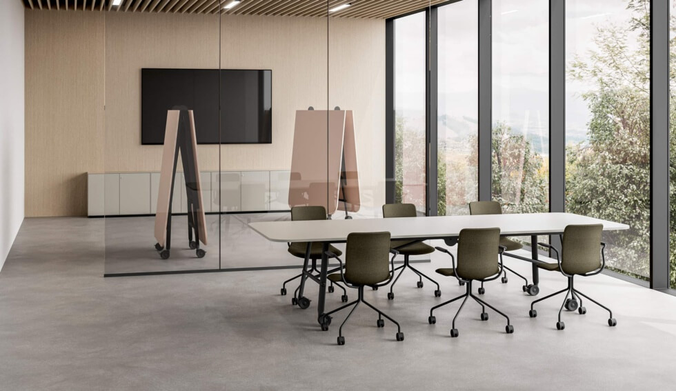 The collection addresses the need for fluidity in shared spaces. It makes these spaces flexible and inclusive as it can adapt to various setups. As Ibebi explains: “It happens ever more frequently to be sitting in front of our desk one moment, and the next to be involved in a meeting with colleagues. The need to alternate individual work with group sharing, gave us the idea to develop Tam Tam: the table with a cross-functional design that moves quickly and effortlessly on castors and is GPP compliant.”