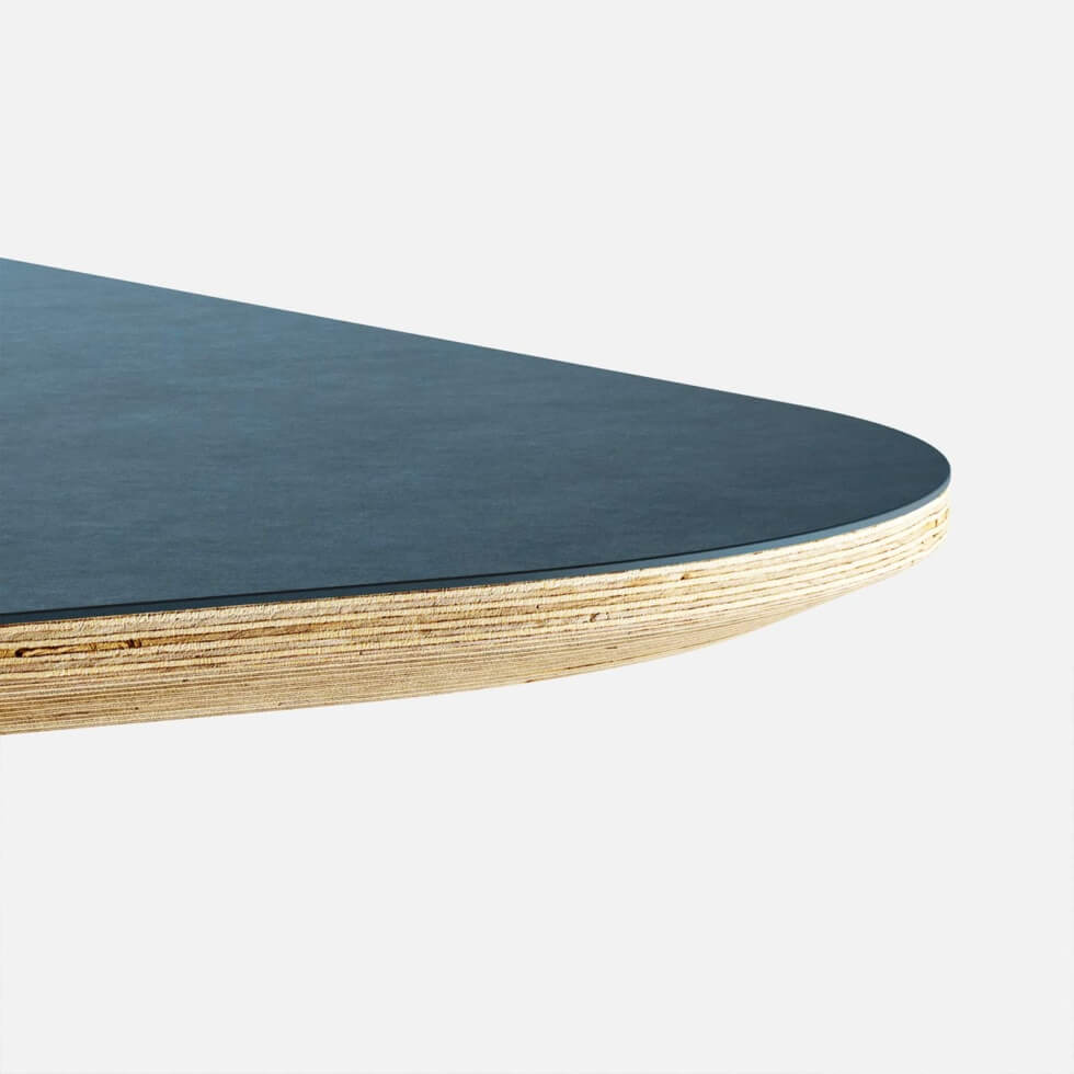 The tables come in a range of tabletop shapes and various finishes and color options. There’s the Tam Tam RET, which has a rectangular top, the Tam TAM CUR with a rounded rectangular top, the Tam Tam TRA featuring a trapezoid top, and the Tam Tam BOT with a barrel-shaped top.