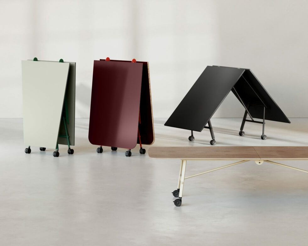 The Tam Tam Collection of vertical folding tables from Italian brand Ibebi is designed to enhance the adaptability of the office or any shared spaces. Its the ideal furniture when dealing with limited interior spaces as it can easily be folded away for storage.