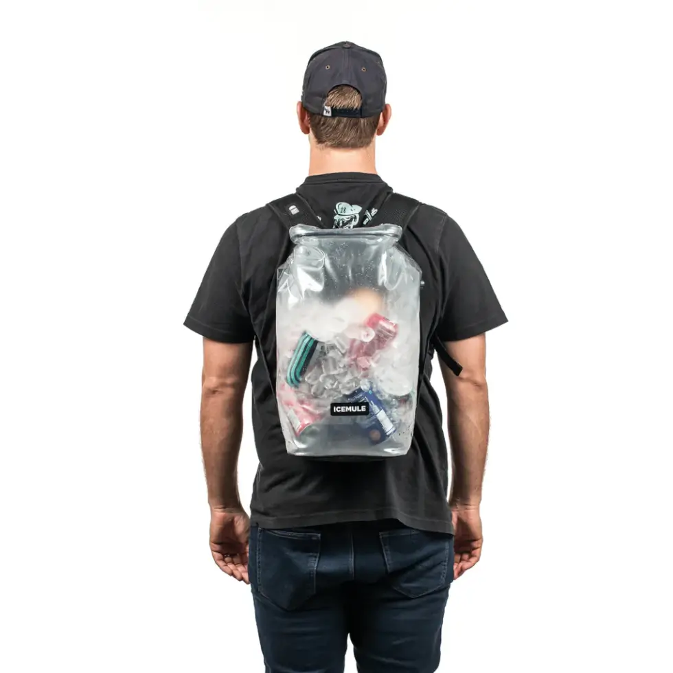 The ICEMULE Clear cooler comes with straps so you can carry it backpack-style. It is available in two sizes: 9L and 15L. The smaller size can fit 6-9 12oz cans or 2-3 750mL bottles and ice. Meanwhile, the larger size can hold 12-15 12oz cans or 3-4 750mL bottles and ice.