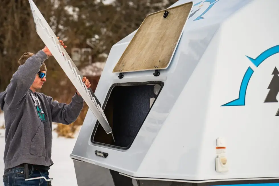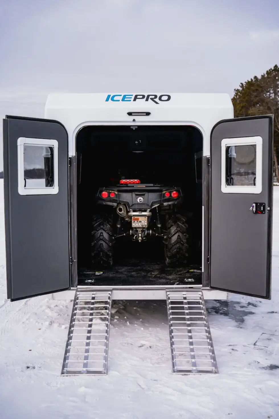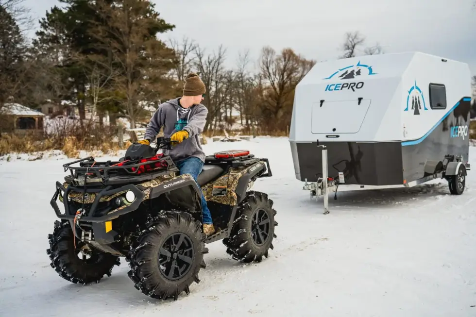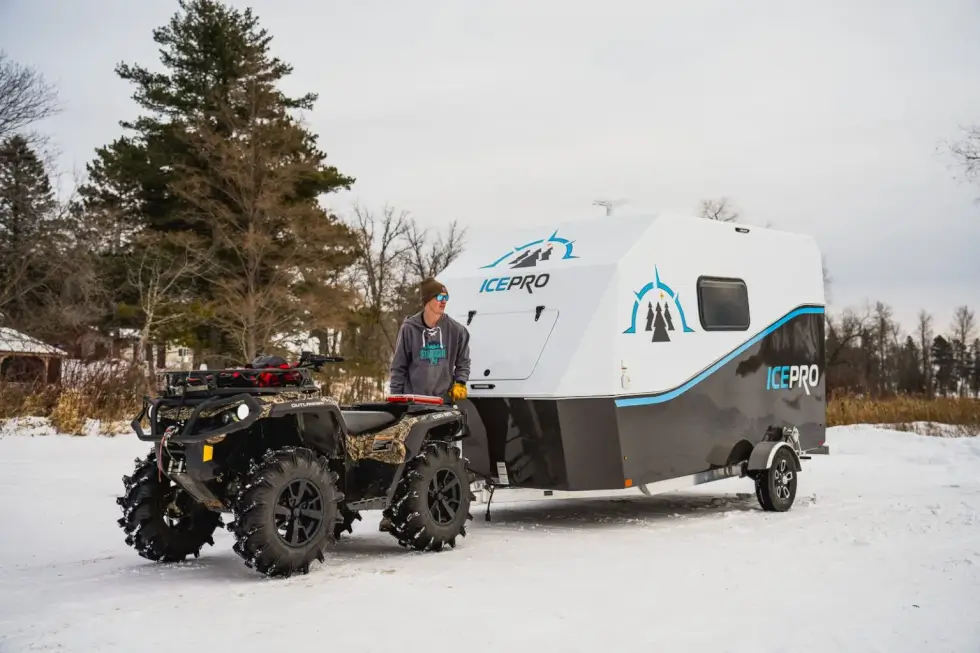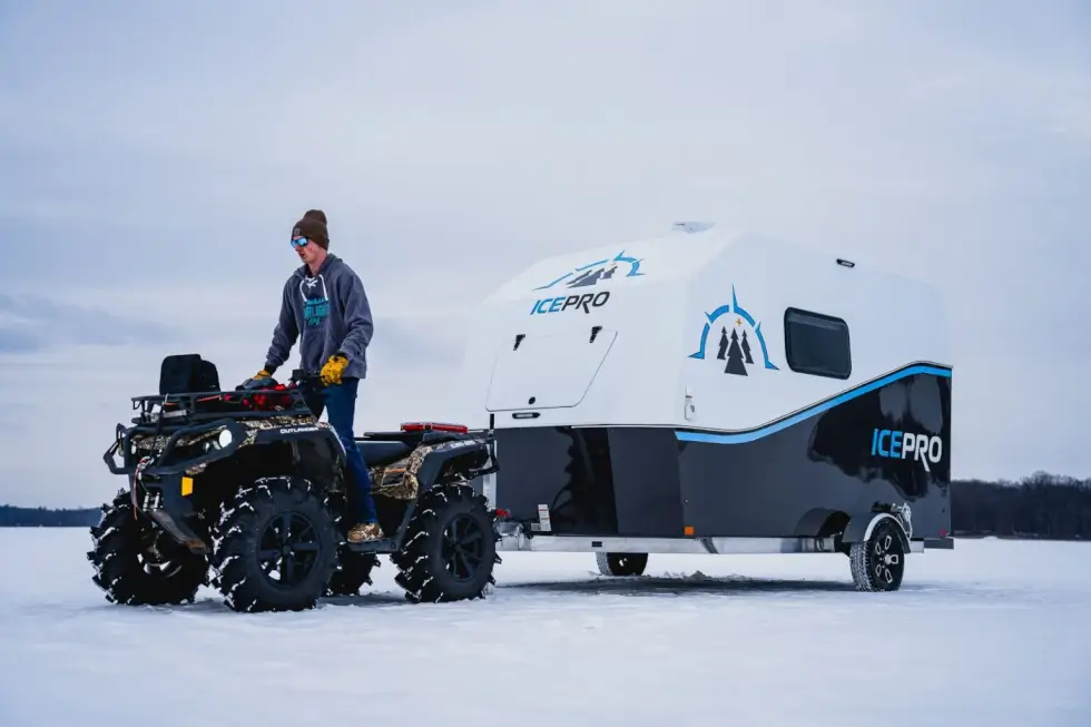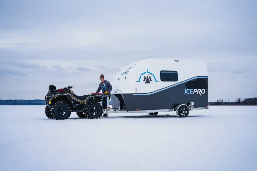 The IcePro takes it even further as it replaces your tent with a compact camper trailer. Of course, you’ll need to haul it over the frozen water, but this bad boy is lightweight enough for a smaller form of transport. Hook it up to a car, drive to your destination, deploy the ATV, and pull it to the best spots.