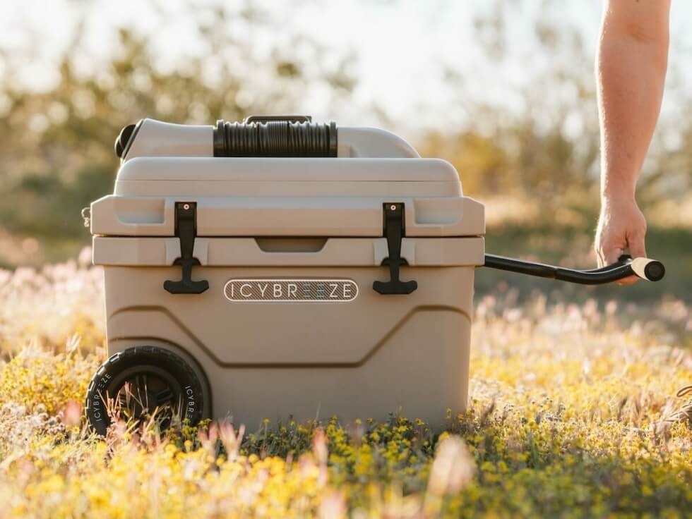 The IcyBreeze Ultimate has a spacious 38qt. capacity, perfect for a family or a large group. It can hold up to 48 canned drinks or 13.61kg of ice. Despite its size, at 4.5”W x 16.5″ D x 21.5” H, it’s designed to be easy to haul around using a metal grab handle and all-terrain wheels for effortless steering. Meanwhile, tie-down points keep it stable during transport to ensure its contents remain intact. This portable outdoor cooler comes in either White, Tan, or Black colorways.