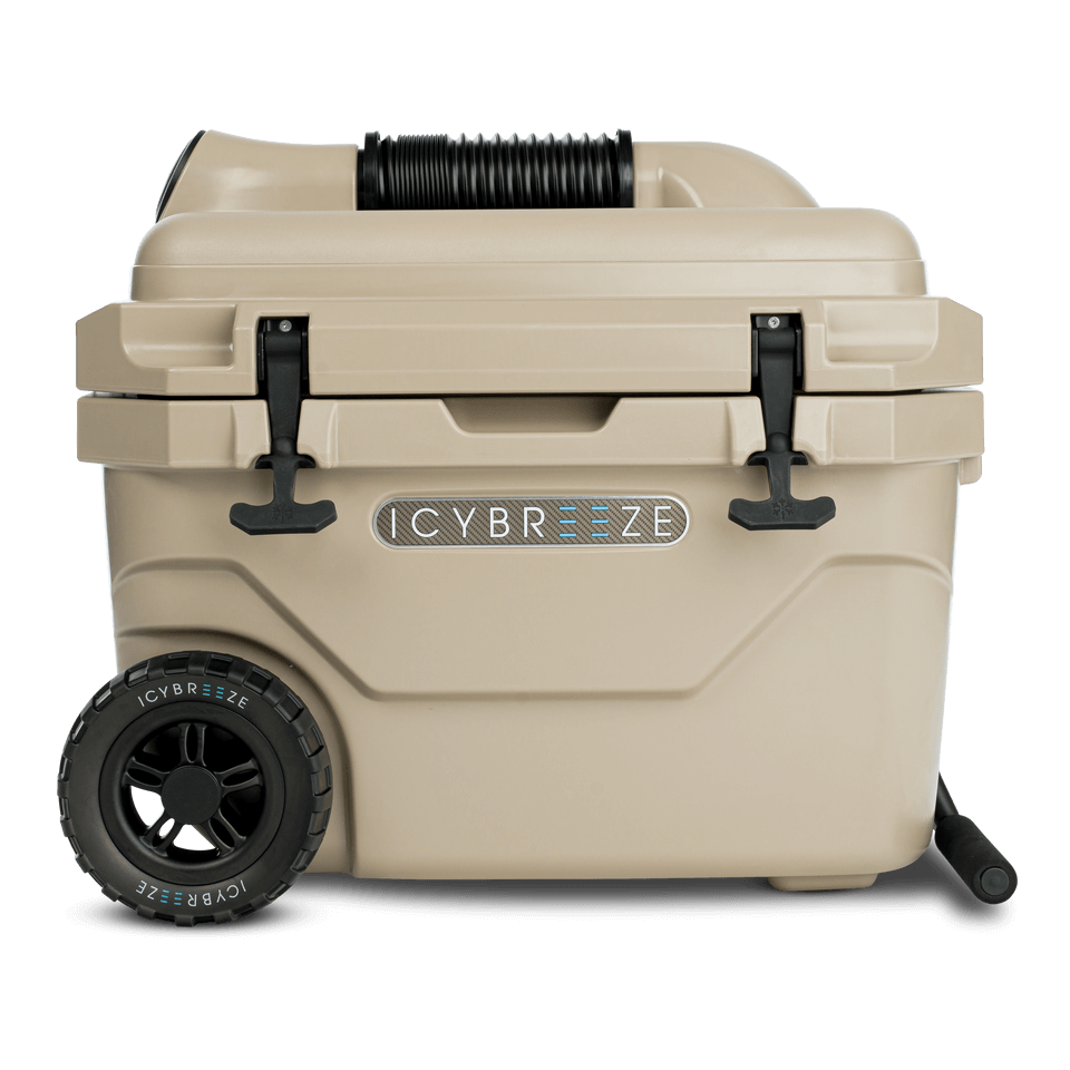 The IcyBreeze Ultimate lets you “experience the pinnacle of personal cooling.” Equipped with advanced cooling technology, it offers both the efficiency of a chest cooler and portable AC in a durable rotomolded construction built to withstand the toughest environments.