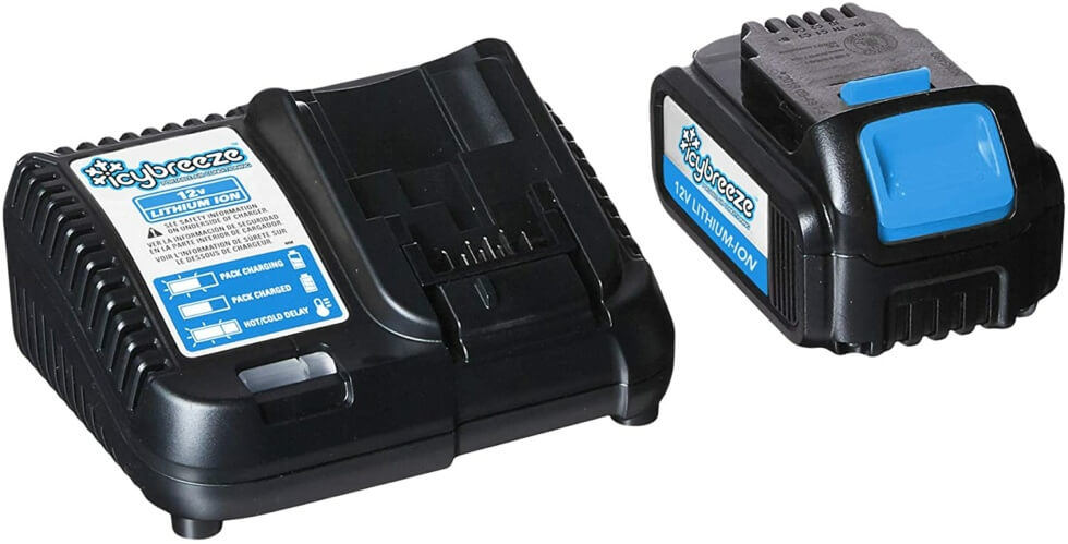 Plus, a directional flexible hose blows the breeze specifically where you want it. It runs on a Lithium-Ion rechargeable battery that’s good for six hours on low, four hours on medium, and 2.5 hours on high fan speed when using the 10AH battery. Meanwhile, using the 6AH battery gives you four hours, 2.5, and 1.5 hours on low, medium, and high, respectively. Thanks to a quick detach battery system, you can swap batteries easily.