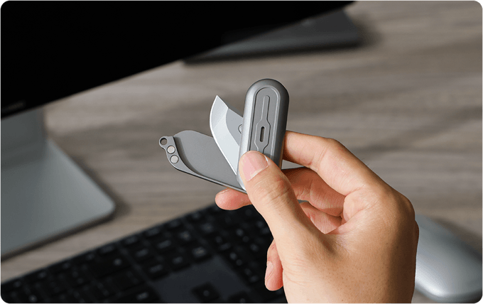 The D2 steel blade is 3mm thick, and is strong enough to open boxes, cut tape or rope, and whatever else comes your way. The blade deploys via a precision roller bearing that allows a smooth and effortless 360-degree spin. It’s a satisfying and fidget-friendly motion, turning the knife into a stress-reliever.