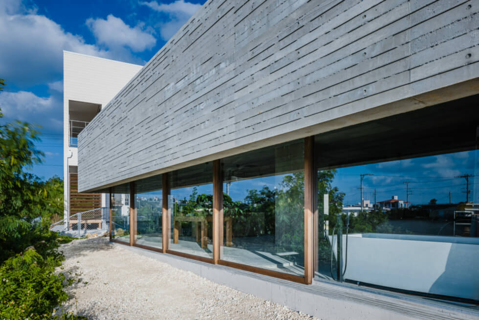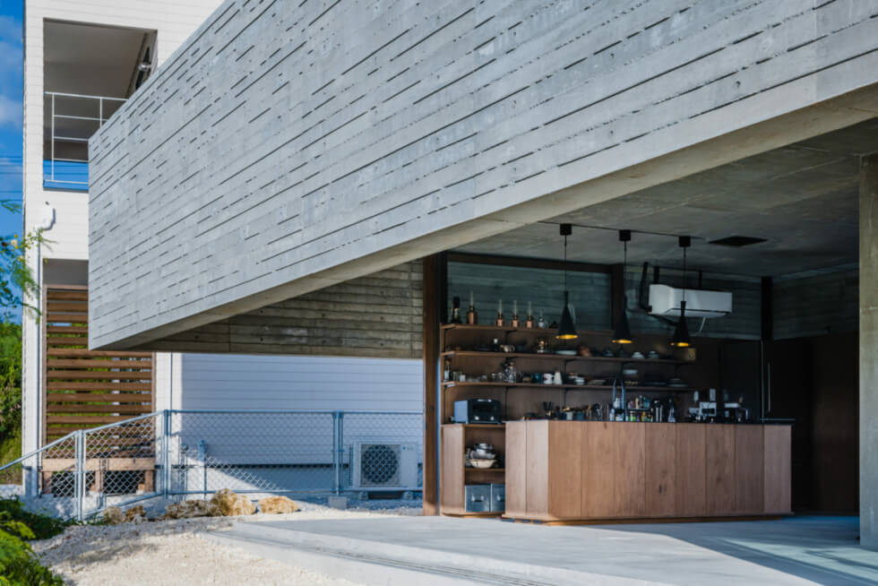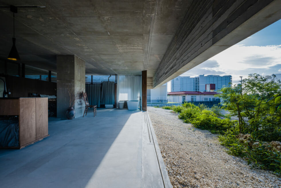 Saitama-based studio IGArchitects designed a concrete building on a small hill overlooking the coast of Okinawa around a single concrete column. Thus, they aptly called it the “One-Legged House” and likened it to an umbrella with its roof and walls extending from the large column supporting it at the center.