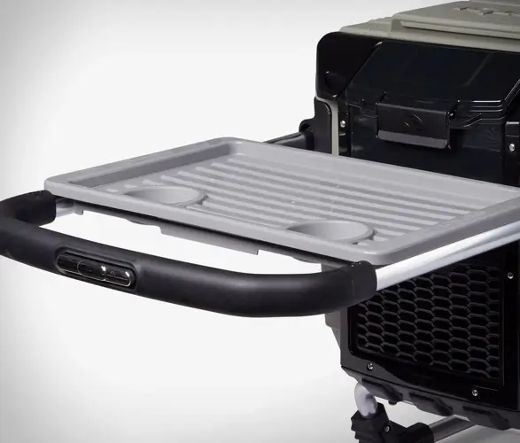 It also has exterior storage pockets to hold small items and a dedicated slot to keep your phone upright. Then another lockable, water-resistant storage compartment with an anti-leak gasket to keep tech gadgets or other important items dry. Other useful features include four self-draining cup holders, a removable butler tray, two stainless steel bottle openers, and drain plugs.