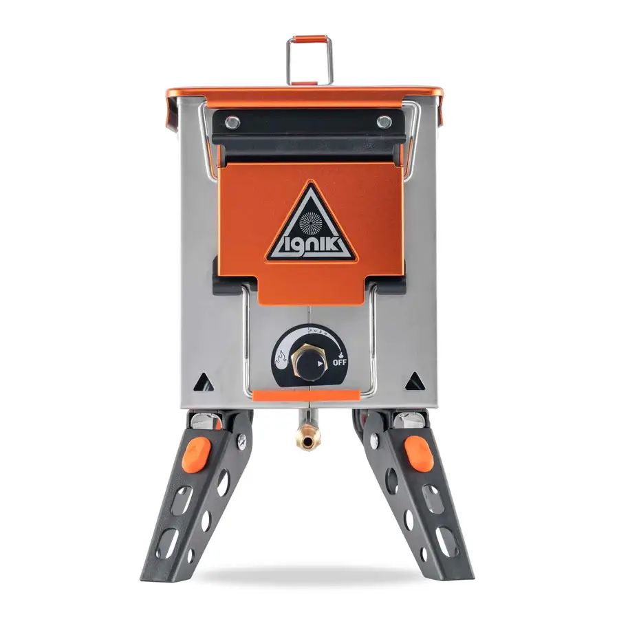 Ignik’s Firecan Elite Fire “lets you take your campfire further” with its lighter body, which is 25% lighter at just 4.6kg, making it the lightest version to date. Moreover, it is more durable thanks to its stainless steel construction with anodized aluminum removable lid. It is also more travel-friendly. It easily packs away with its tucked-away, quick-release connector and Flame controls on the FireCan. This CSA-certified camping gear produces more heat power giving out over 50K BTU/Hr. heat output.