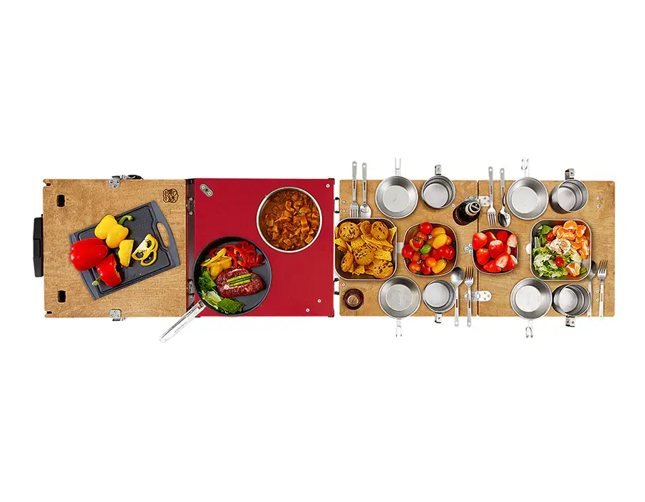 The iKamper Aioks is ISO 9001 and 14001 certified and manufactured in South Korea to the highest CSA certifications for international quality and environmental standards. It’s the complete outdoor kitchen setup that can sit four people comfortably and allow them to cook and enjoy their meal at the same time.