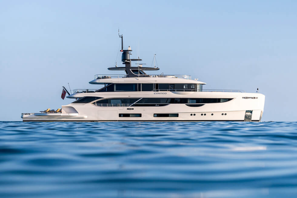 In Spanish, its name is an informal way to say “with you,” which feels appropriate for this stunning 133-foot monohull. Before its christening as such, this magnificent watercraft was a 2024 Benetti 40M Oasis. According to official documentation, it is the 16th in the series to leave the Italian shipyard.