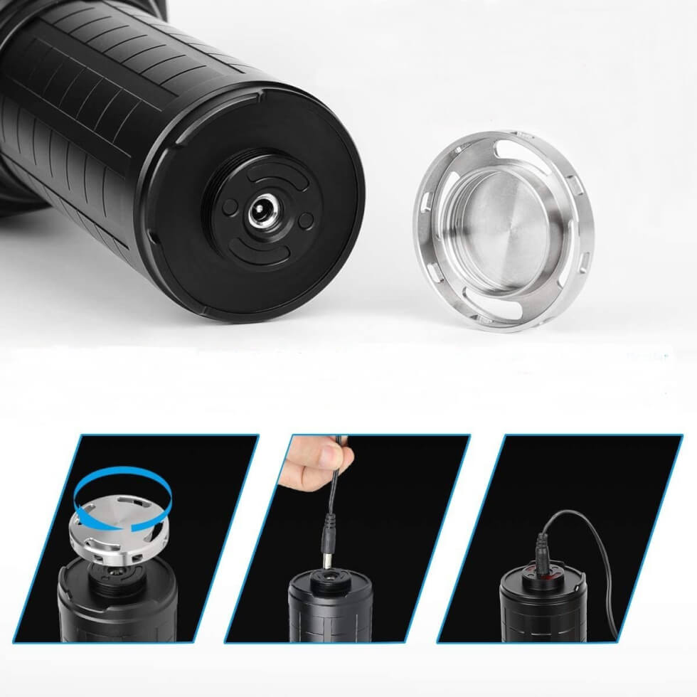 Dubbed as the “brightest flashlight in the world,” it packs 18 pieces of Cree XHP70 2nd high lumens with a max output of 100,000 lumens in turbo mode. In perspective, the light is 50x brighter than car lights and runs at such brightness for an hour and 52 minutes before it drops to 25,000 lumens or High III mode.