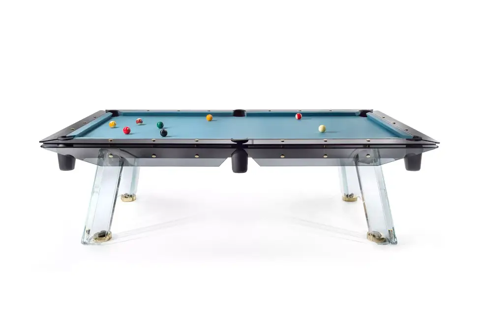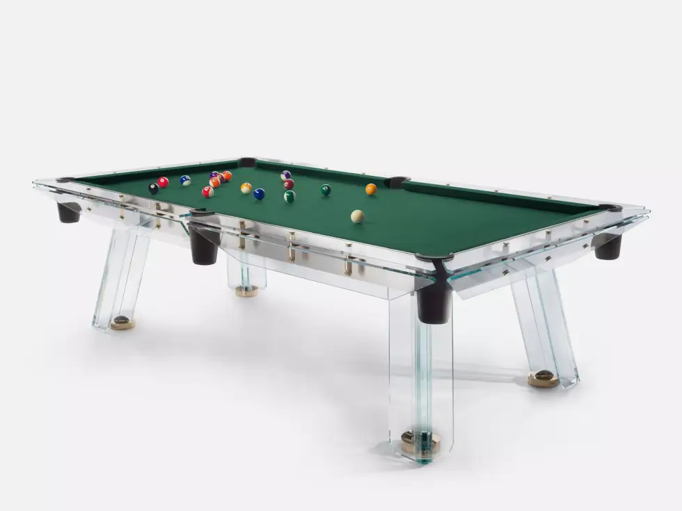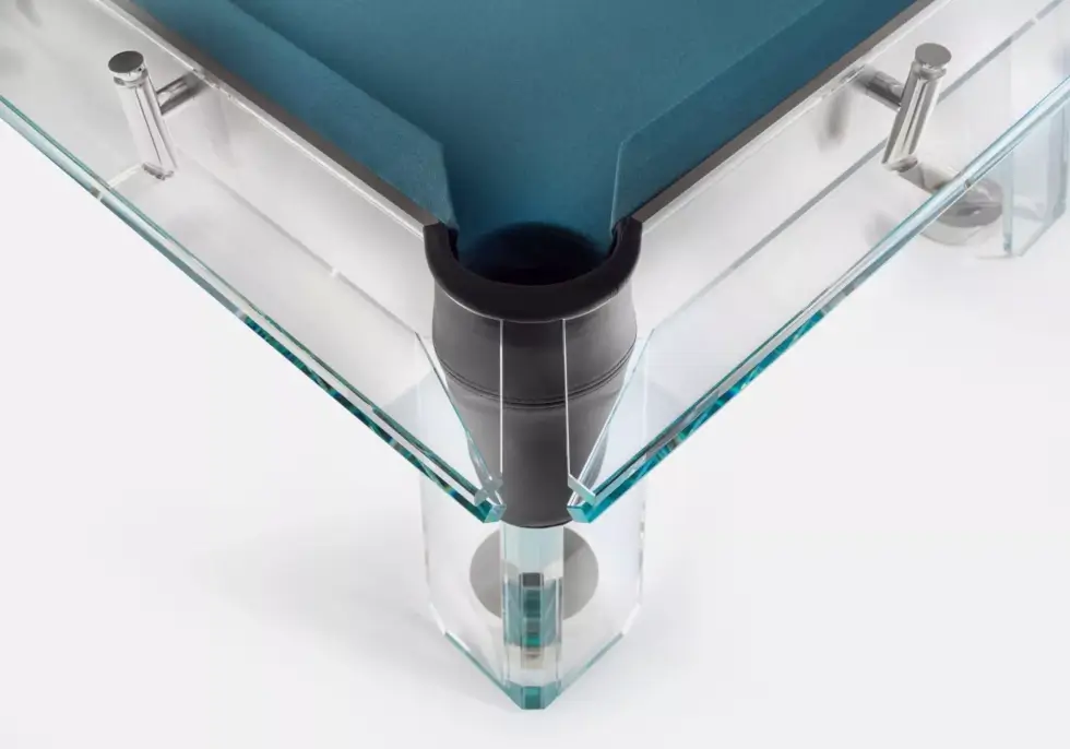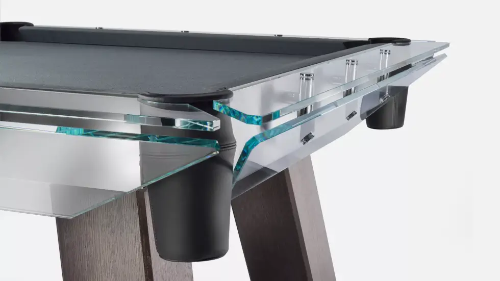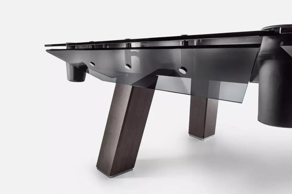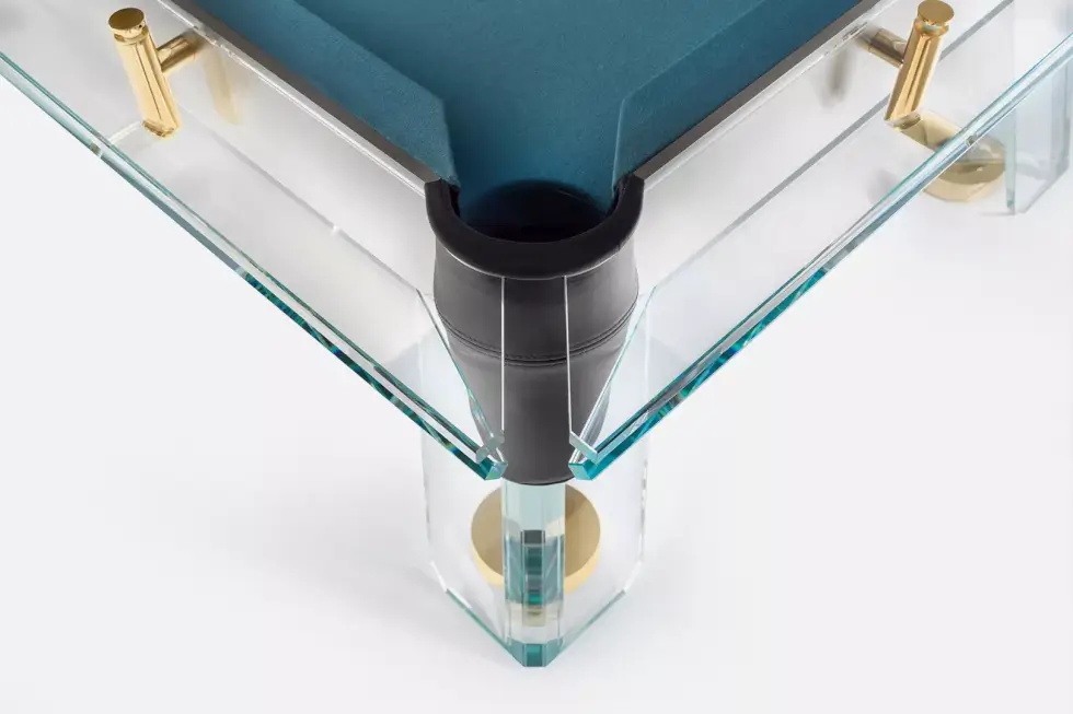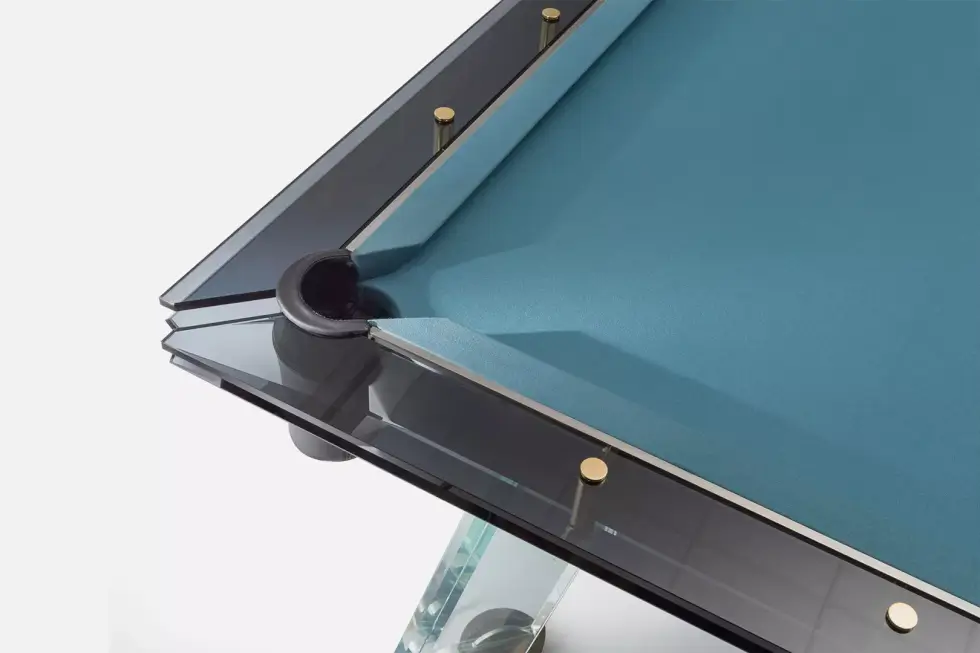 The connecting joints holding the structure’s form are chrome while the pockets are crafted out of genuine leather. The Filotto’s dimensions are 105.5” x 60” x 32” and meet the 8-feet regulation size. What elevates its aesthetics is Impatia’s decision to use low-iron glass side, short, and foot rails.
