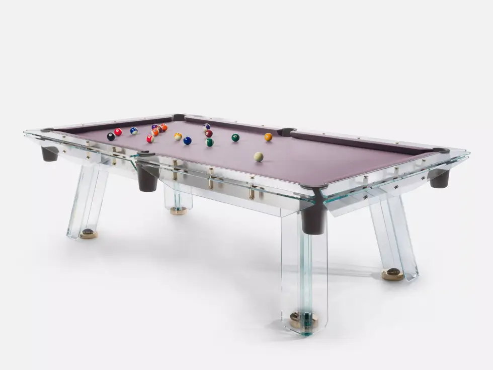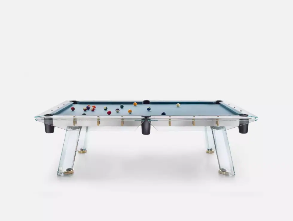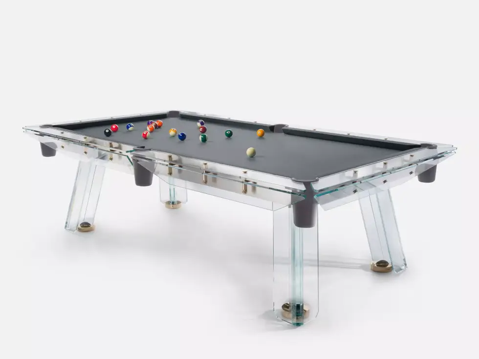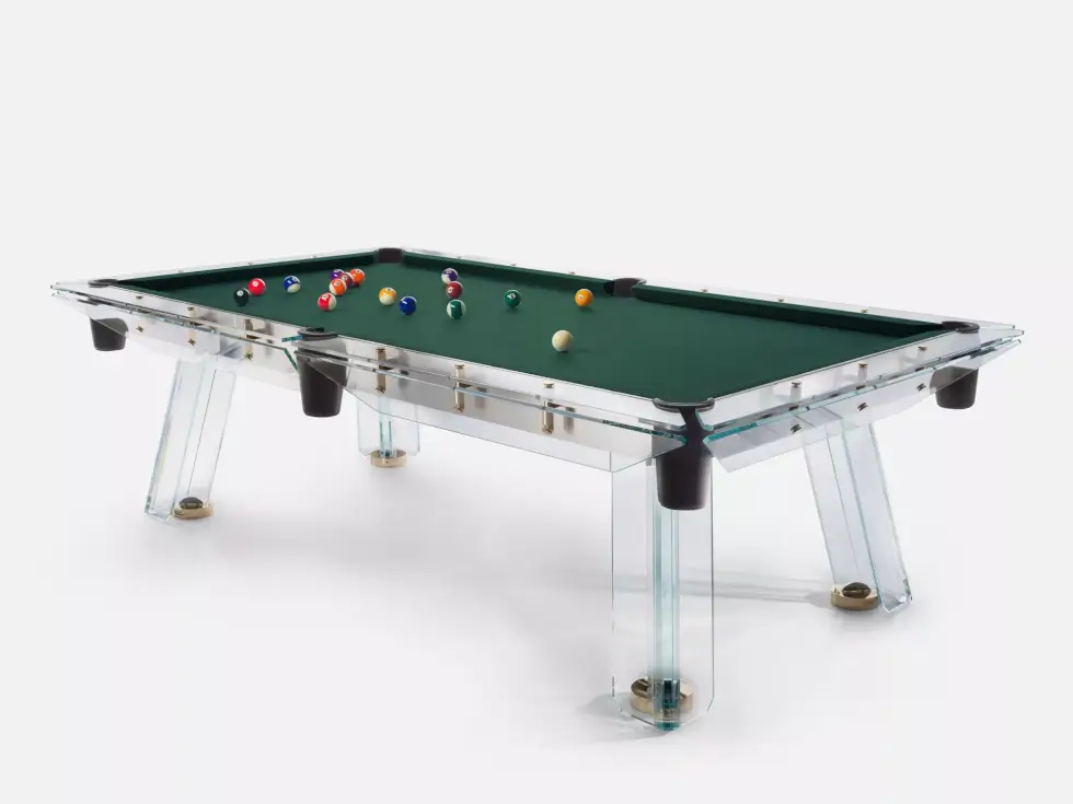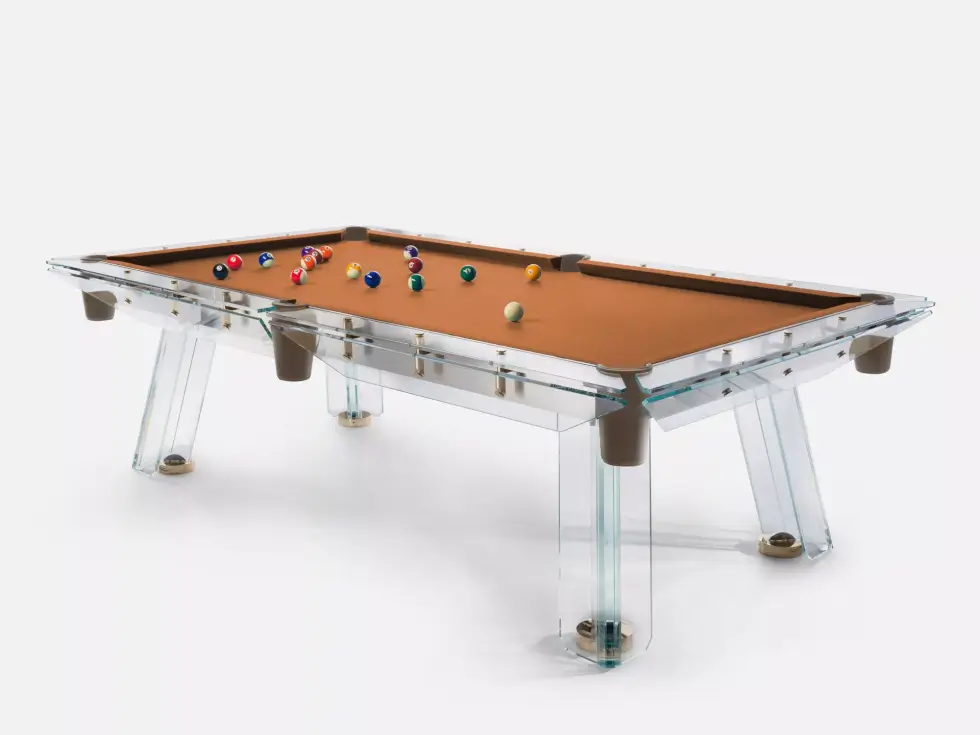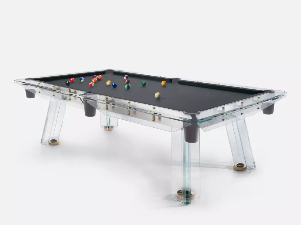 The connecting joints holding the structure’s form are chrome while the pockets are crafted out of genuine leather. The Filotto’s dimensions are 105.5” x 60” x 32” and meet the 8-feet regulation size. What elevates its aesthetics is Impatia’s decision to use low-iron glass side, short, and foot rails.