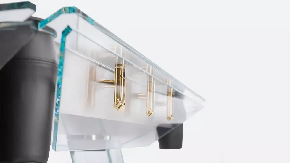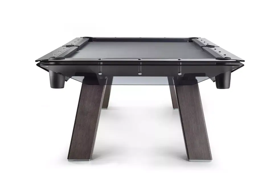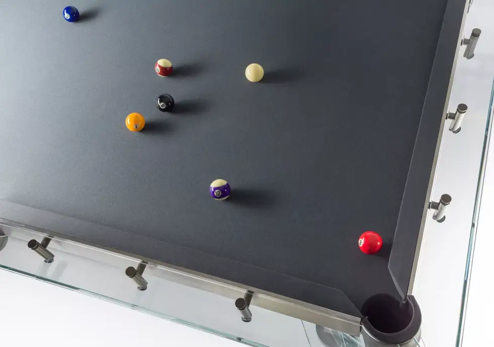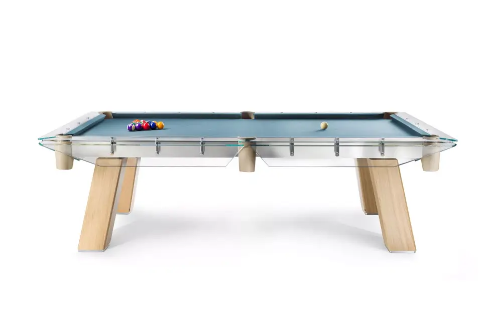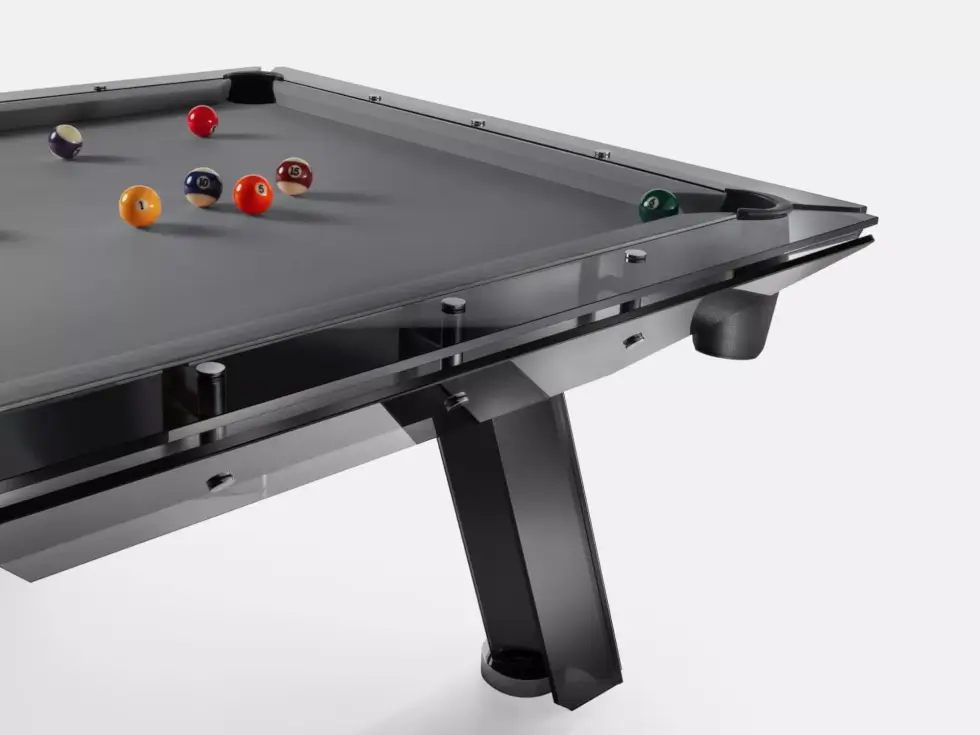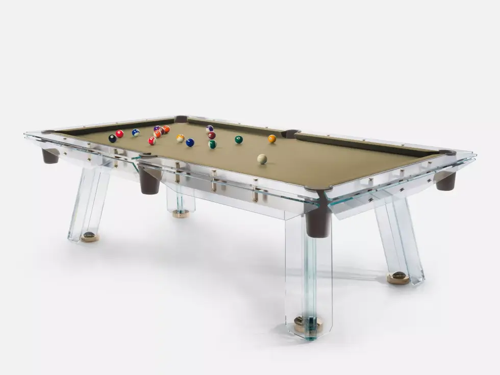 The connecting joints holding the structure’s form are chrome while the pockets are crafted out of genuine leather. The Filotto’s dimensions are 105.5” x 60” x 32” and meet the 8-feet regulation size. What elevates its aesthetics is Impatia’s decision to use low-iron glass side, short, and foot rails.