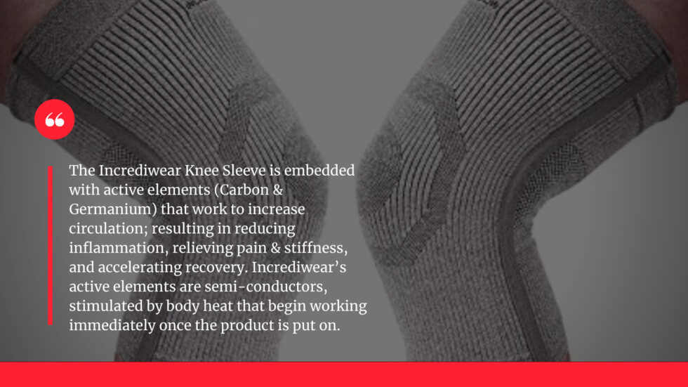 These are heat-sensitive elements that activate the body’s natural warmth, which subsequently helps in the release of ions needed to activate the molecular vibrations that increase blood circulation. They also help increase the flow of lymph fluid which aids in the body’s waste removal system. What happens then is the affected area gets more nutrients and oxygen to speed up the natural healing process. The Incrediwear Knee Sleeve is even worn by some super high profile athletes and by many professional football, basketball, baseball, and soccer teams and they can vouch for its effectiveness.