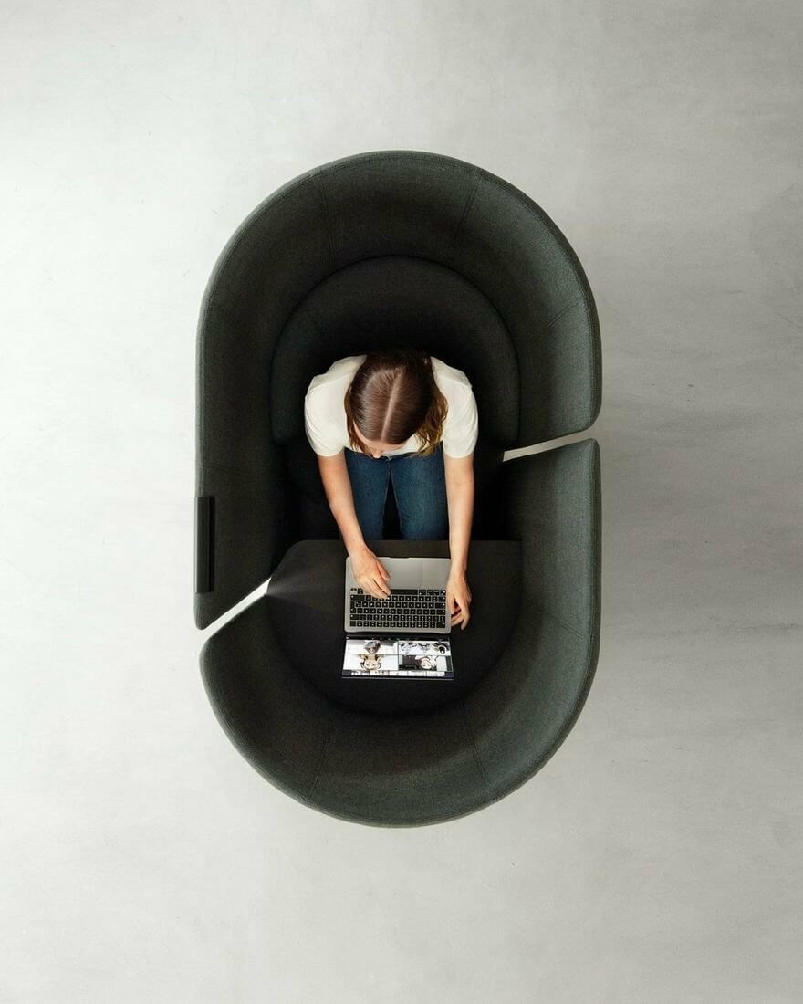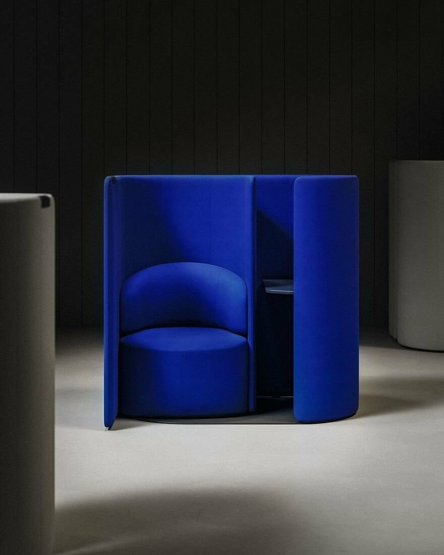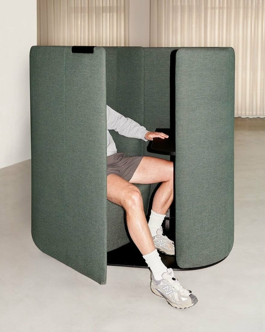 London-based design studio Industrial Facility developed the Tulipan Pod for Danish furniture brand +Halle. It’s an enclosed workspace meant to provide privacy without the feeling of being isolated.