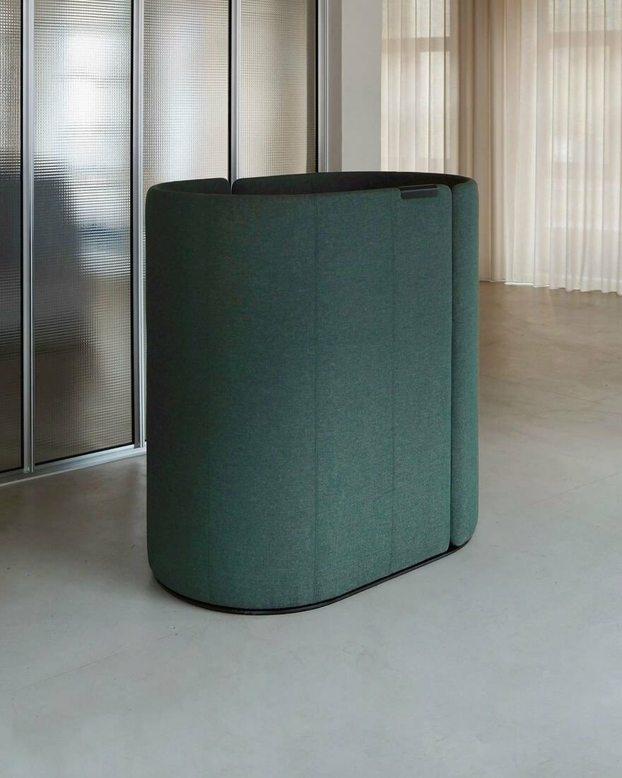 As +Halle describes it, this is a “piece of furniture that offers a moment of separateness without the feeling of closing the door on its surroundings.” It’s an office cubicle per se, but instead of the usual hard walls that separate each cubicle, its a soft enclosure inside and out.