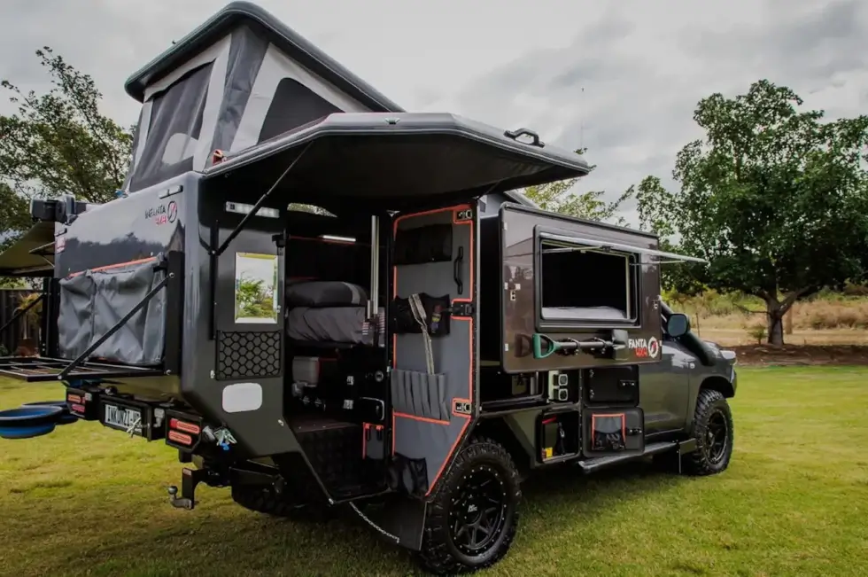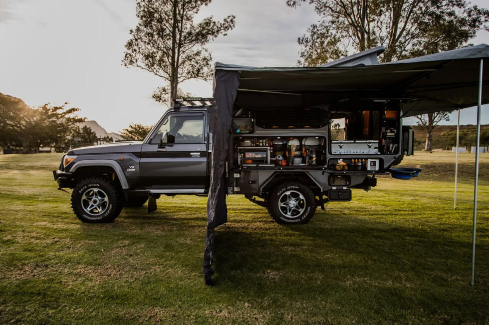 Optional add-ons include a 270-degree awning, an inverter, and solar panels. Meanwhile, the 105 Ah battery, Victron charger, and battery monitor come as standard with your Inkunzi. While a Toyota Land Cruiser is featured for the demo unit, other models should be compatible for customization as well.