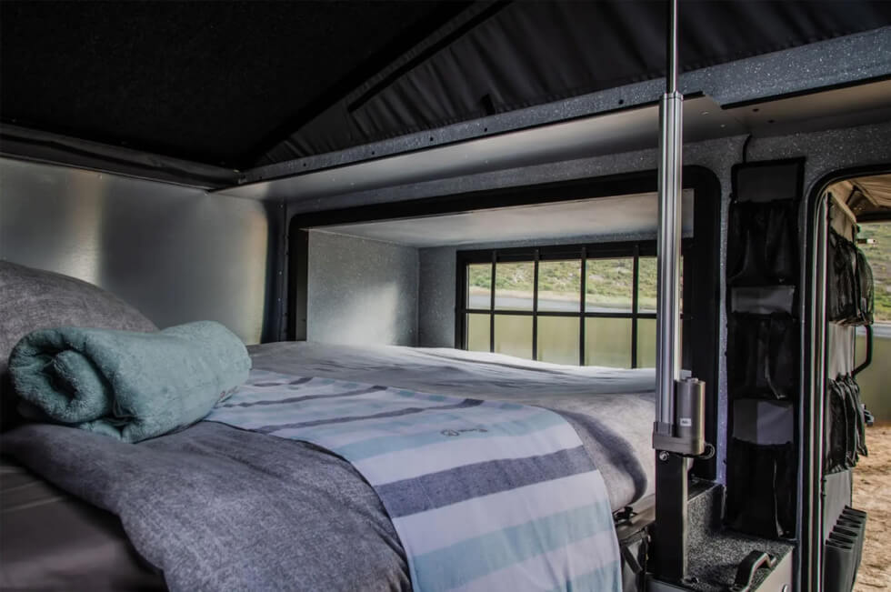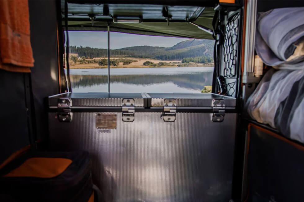 At the push of a button, the electric pop-up roof deploys in no time. Slide-out compartments expand the volumes within and also double as storage for camping gear and more. Infanta 4×4 ensures the Inkunzi is brimming with everything the user needs to enjoy extended stays off the grid.