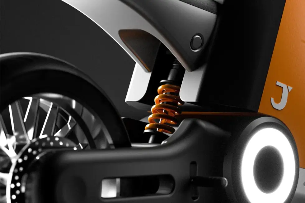 Renders do not share in-depth detail about what’s under the aerodynamic shell in white, orange, and dark metallic gray. However, by the absence of traditional forks at the front, you can guess the iNSTINCT uses a hub-center steering configuration. The cowl that holds its LED headlight looks like an air intake until its illuminated.