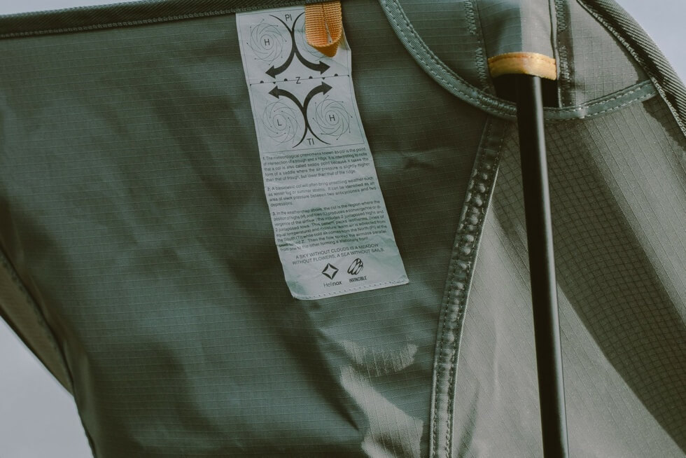 The INVINCIBLE x Helinox Outdoor Collection is inspired by Henry Thoreau’s quote: “A sky without clouds is a meadow without flowers, a sea without sails.” It “perfectly integrates the advantages of Helinox’s outdoor line products and its famous Tactical Line.”