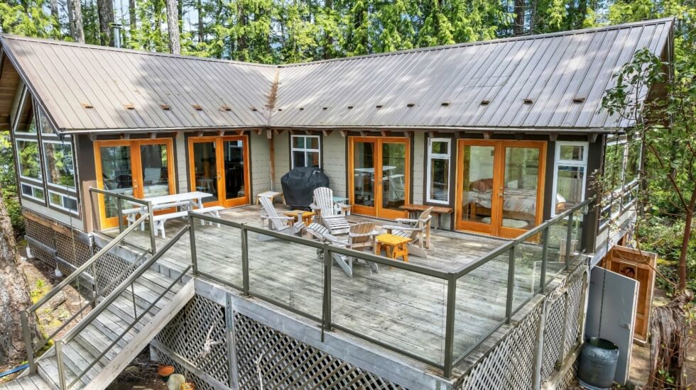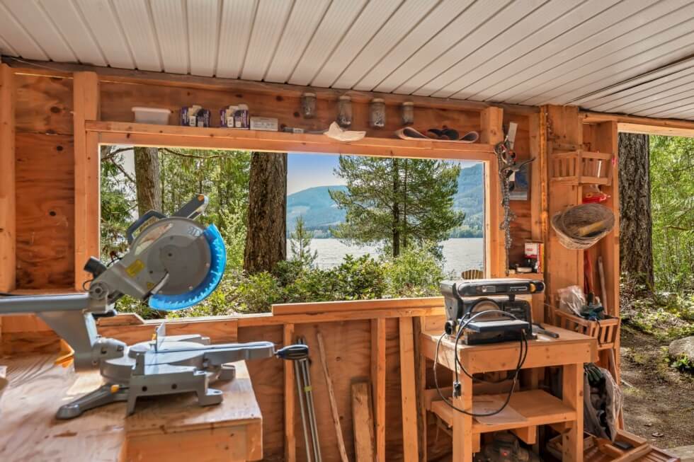 The island is “one of only a handful of private islands on Cowichan Lake” and is “an exceedingly private and accessible recreational retreat.” Additional features include an engineered septic system, lower-level workshop, and expansive decks. There’s also a wood-fired hot tub, a studio workshop. Island 7 will “easily become a family legacy to create memories that last a lifetime.”