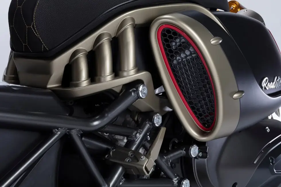 Instead, this configuration also shows another Öhlins monoshock unit at the front. Nissin brake systems are likewise in place for reliable stopping power. Completing the package is a combination of matte black and bronze paint with red trims for a vibrant contrast. The Roadster 400 looks like a high-performance bike in the guise of a scooter.