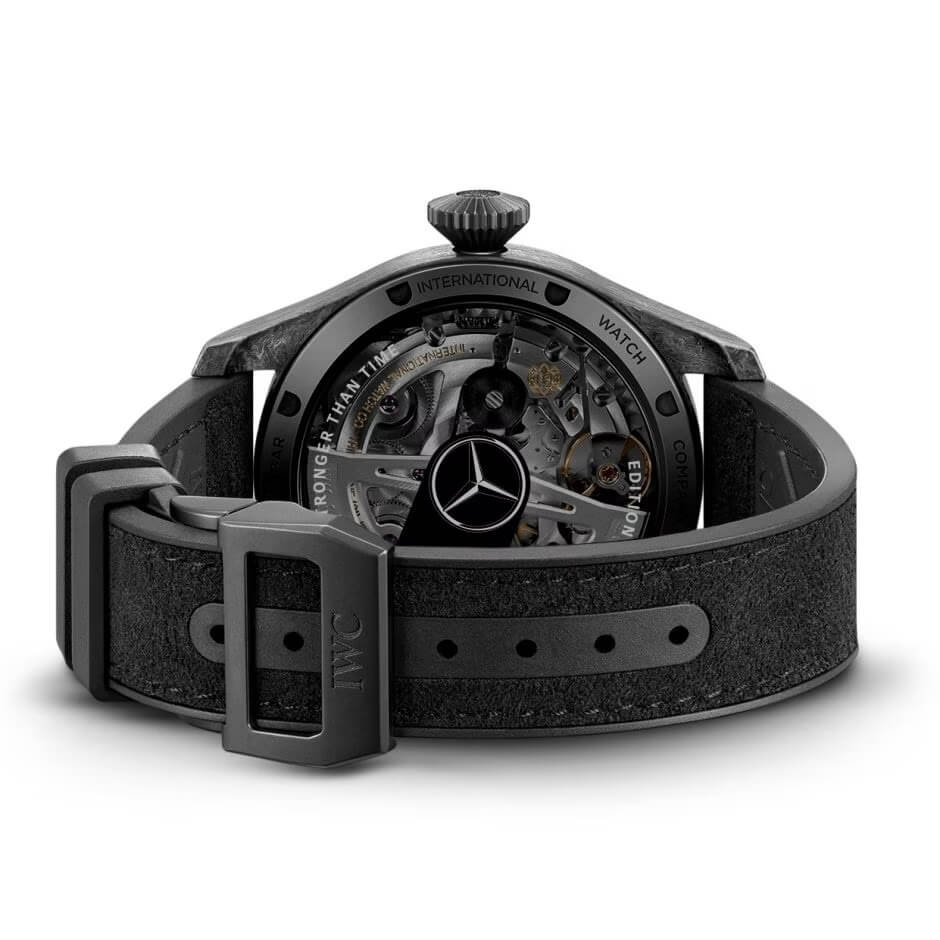 Both flaunt an embossed black dial with textures that closely resemble the air intakes of Mercedes-AMG’s high-performance vehicles. Another unique feature of the Big Pilot’s Watch AMG G 63 is the applied indices and baton hour markers.