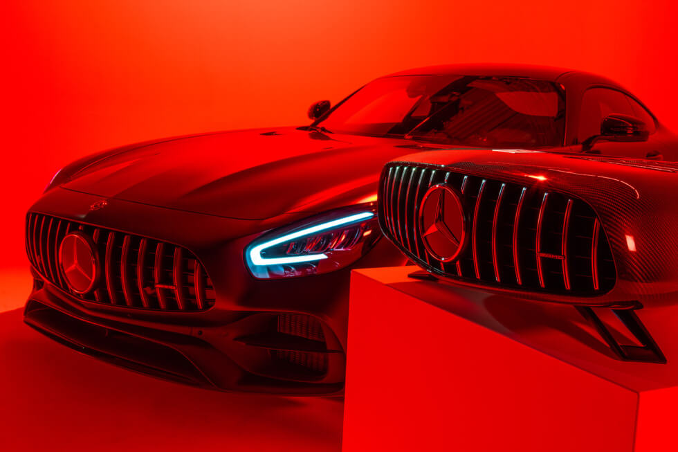 The AMG Performance Luxury Audio’s clearly draws aesthetic cues from the Mercedes-AMG GT. Specifically, the accurate depiction of the supercar’s radiator grille. iXOOST replicates the hood strakes, 15 slats, and silver three-pointed star emblem. Original exhaust tips from the Mercedes-AMG GT line the sides.