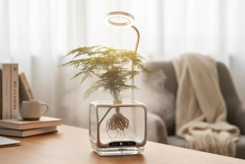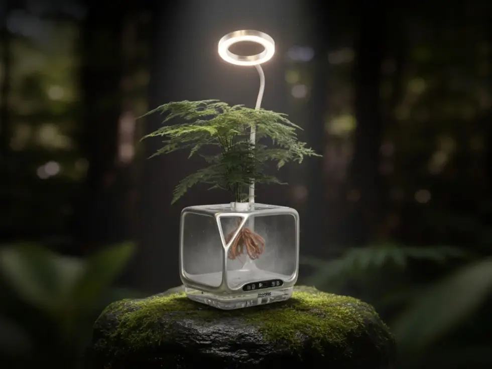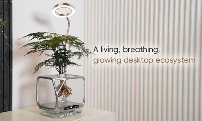 It’s a living, breathing, and glowing desktop ecosystem on your desk. The “Air-Grow” chamber inside is where the plant gets oxygen and nutrient vapor for growth. It provides the perfect environment for plants to thrive, with every element — temperature, humidity, and light — precisely controlled to help plants grow faster, healthier, and stronger.