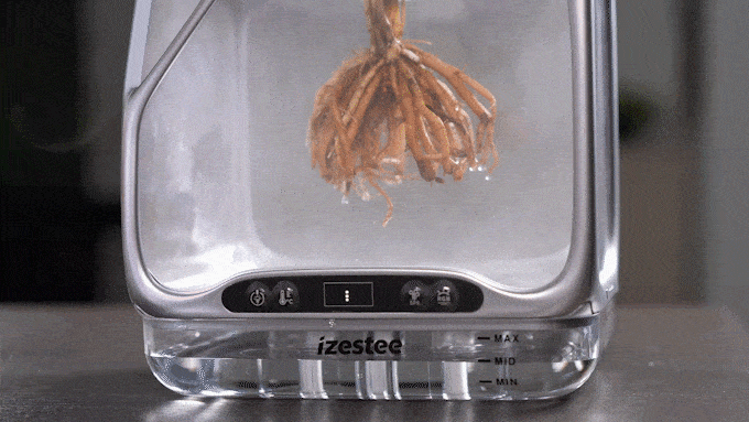 Izestee Plant Cultivator is “the world’s first desktop aeroponic plant ecosystem” that grows plants using mist for a cleaner process. No soil, mud, or moldy water from hydroponics. Instead, it releases nutrient-rich ultrasonic mist and automates grow lights to facilitate plant growth indoors, right on your desk.
