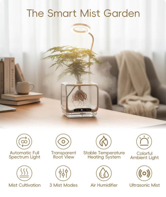 The built-in heating system with a maximum temperature of 45°C maintains the ideal temperature for plant growth once activated. Outside, the device has an LED display for real-time temperature monitoring. Meanwhile, three adjustable mist modes cater to different plant types, from seedlings to mature greens. The Izestee Plant Cultivator releases fine mist through the top vents to keep the air around the plants comfortably humid.