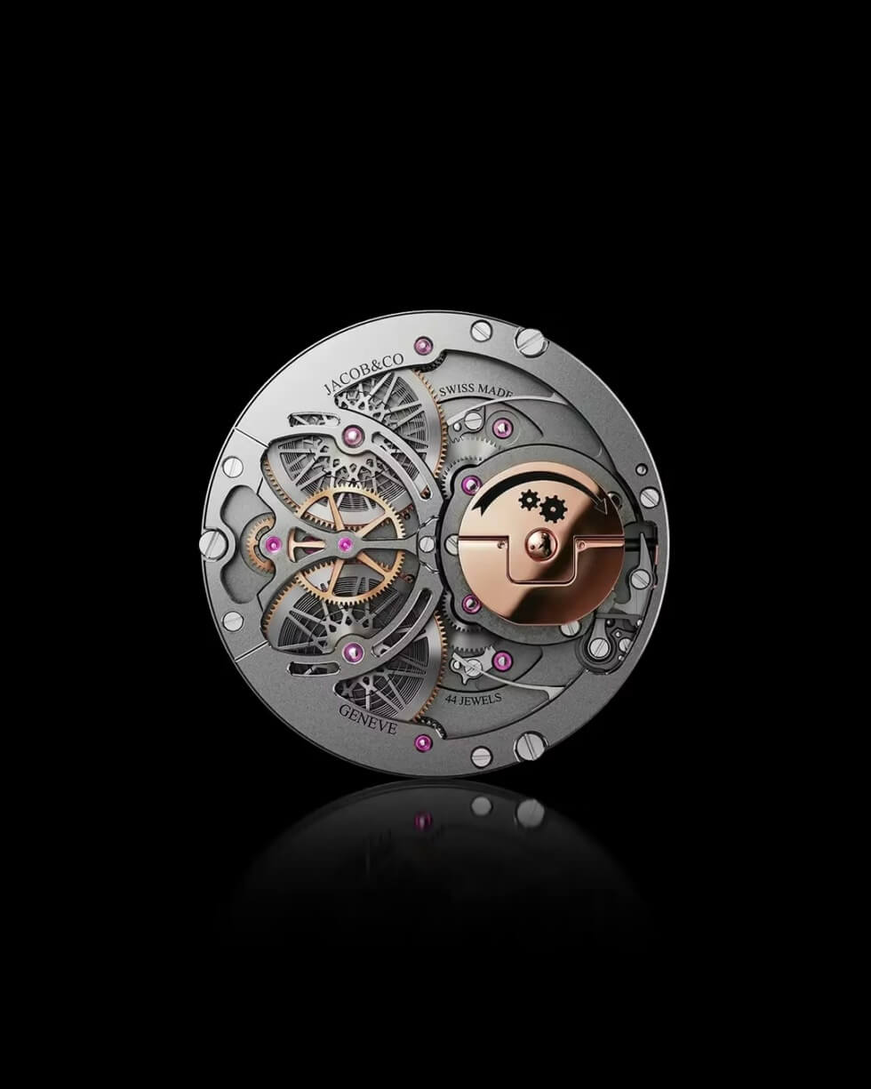 In contrast to similar complications in other watches, its rate is 15 times faster. The God of Time relies on an in-house JCAM60 manual caliber with a 60-hour power reserve. The hand-wound movement comprises 282 components and has a frequency of 3Hz or about 21,600 vph. Jacob & Co. pairs each example with a blue alligator leather strap and an 18K rose gold deployment buckle.